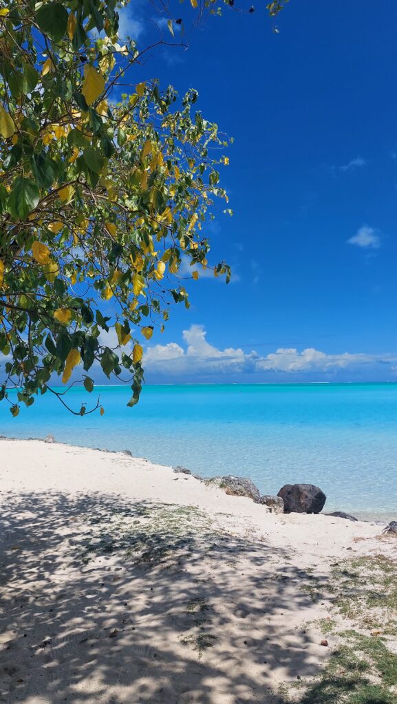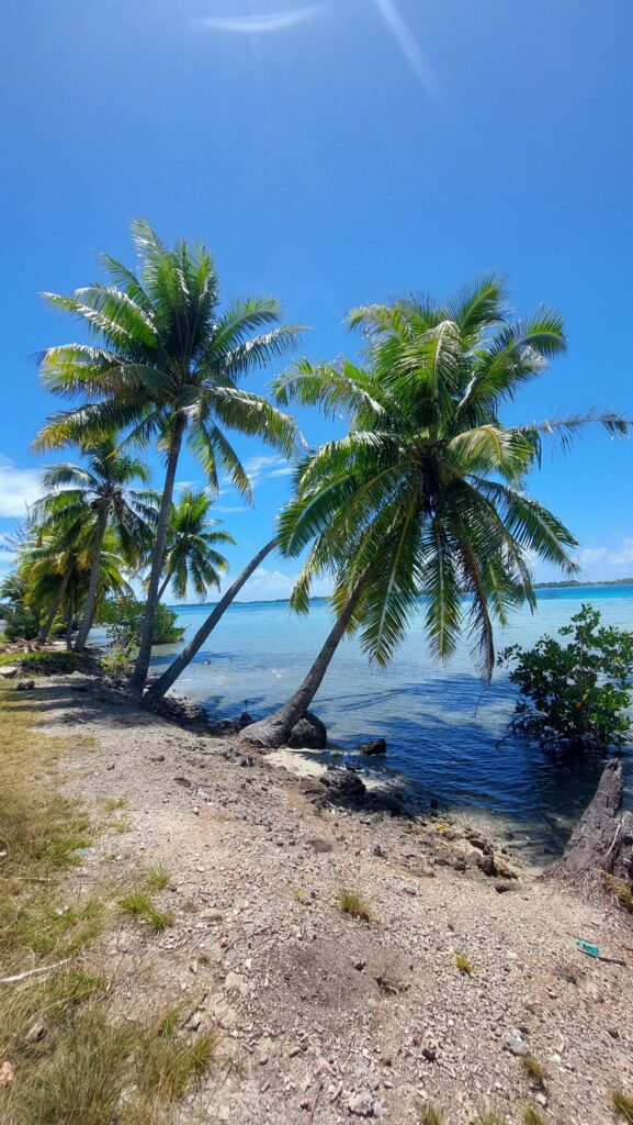 L’aéroport est minuscule et installé sur un motu (petit îlot). Air Tahiti met à disposition une navette bateau qui rejoint l’île principale en une dizaine de minutes — déjà une jolie entrée en matière avec la vue sur le lagon.