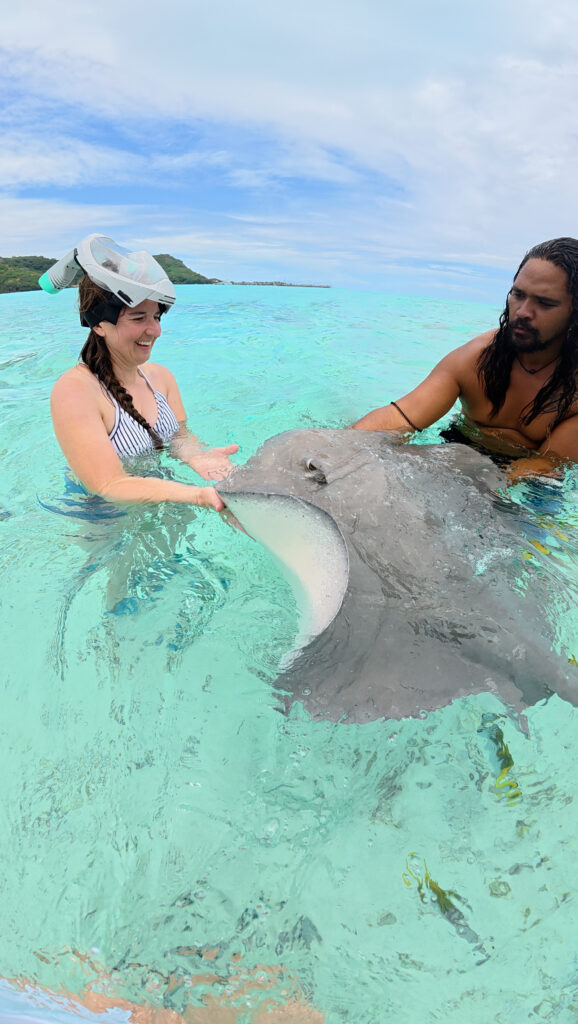 Excursion lagon : Bora Bora Onoku Services. Pour réserver une journée avec eux, contactez les par mail, cela nous a coûté 12 000 xpf par personne.